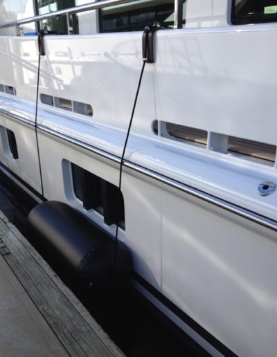 Megafend new industry-best EDW-P™ welded inflatable fender series. Even greater abrasion resistance, UV resistance and tear strength than our standard series. EDW-P™ series gives even more peace-of-mind with twice the puncture resistance and four times greater abrasion resistance than Hypalon. It uses 40oz/yd Mil Spec polyurethane coated fabric, cited in U.S. Navy testing* as considerably stronger than 40oz/yd Hypalon for its inflatable surface craft. Add to that better coating adhesion, better air-holding characteristics and especially– an even longer expected service life.